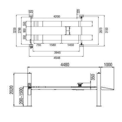 Lift capacity 3700KG each level each four post Lift height: 2000/1600mm One suit power unit and control box Power: 2.2KW Without middle plate, with side plate Voltage: 230V 50HZ 1ph